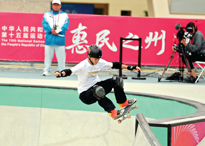 11月11日,第十五届全国运动会竞体项目滑板决赛在惠州收官。赛事吸引了17个省、自治区、直辖市的17支代表队、60名运动员参赛,围绕男子碗池、女子碗池、男子街式、女子街式四个小项的冠军展开激烈角逐。其中广东队派出12名选手参赛,凭借稳扎稳打的发挥斩获3金1银1铜,三位夺得金牌的选手陈烨、邹明珂、潘家杰均为惠州运动员。